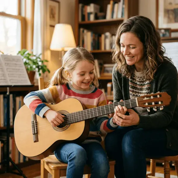 Научить ребёнка играть на гитаре проще, чем кажется, если не совершать типичных родительских ошибок. В нашей статье мы разберем всё по порядку: в каком возрасте действительно стоит начинать, почему классическая гитара с нейлоновыми струнами — лучший выбор для первых лет и как не прогадать с размером инструмента. А главное — поделимся конкретной схемой первых занятий, которая удержит внимание ребёнка и не даст ему бросить музыку через месяц. Вы будете точно знать, с чего начать и как закрепить успех.