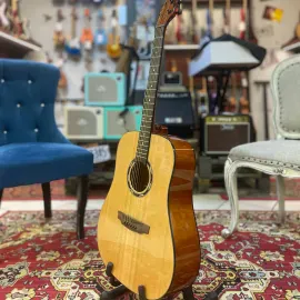 Инструмент имеет стандартный размер 4/4 с длиной 105 см и мензурой 651 мм. Верхняя дека изготовлена из ели, нижняя дека и обечайка – из агатиса, что обеспечивает качественное звучание. Гриф выполнен из окоуме, накладка грифа – из кабукалли. Ширина верхнего порожка составляет 43 мм. Гитара оснащена 20 ладами и металлическими струнами, фурнитура выполнена из черного никеля.