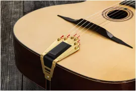 Гриф из махагони позволяет передать наибольшее количество энергии в бридж и деку. Махагон достаточно крепкий и плотный, чтобы обеспечивать стабильность геометрии грифа. При этом относительно легкий.
