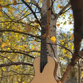 Оченьпонравилось, как она выглядит вживую — спокойная натуральная отделка без лишнего блеска. Удобно держать, баланс хороший, рука не устает. Лады аккуратные, ничего не цепляет, струны с завода стоят комфортно. Ремень пригодился сразу, тюнер включила — поймал ноты без плясок с бубном. Для вечерних посиделок самое то.