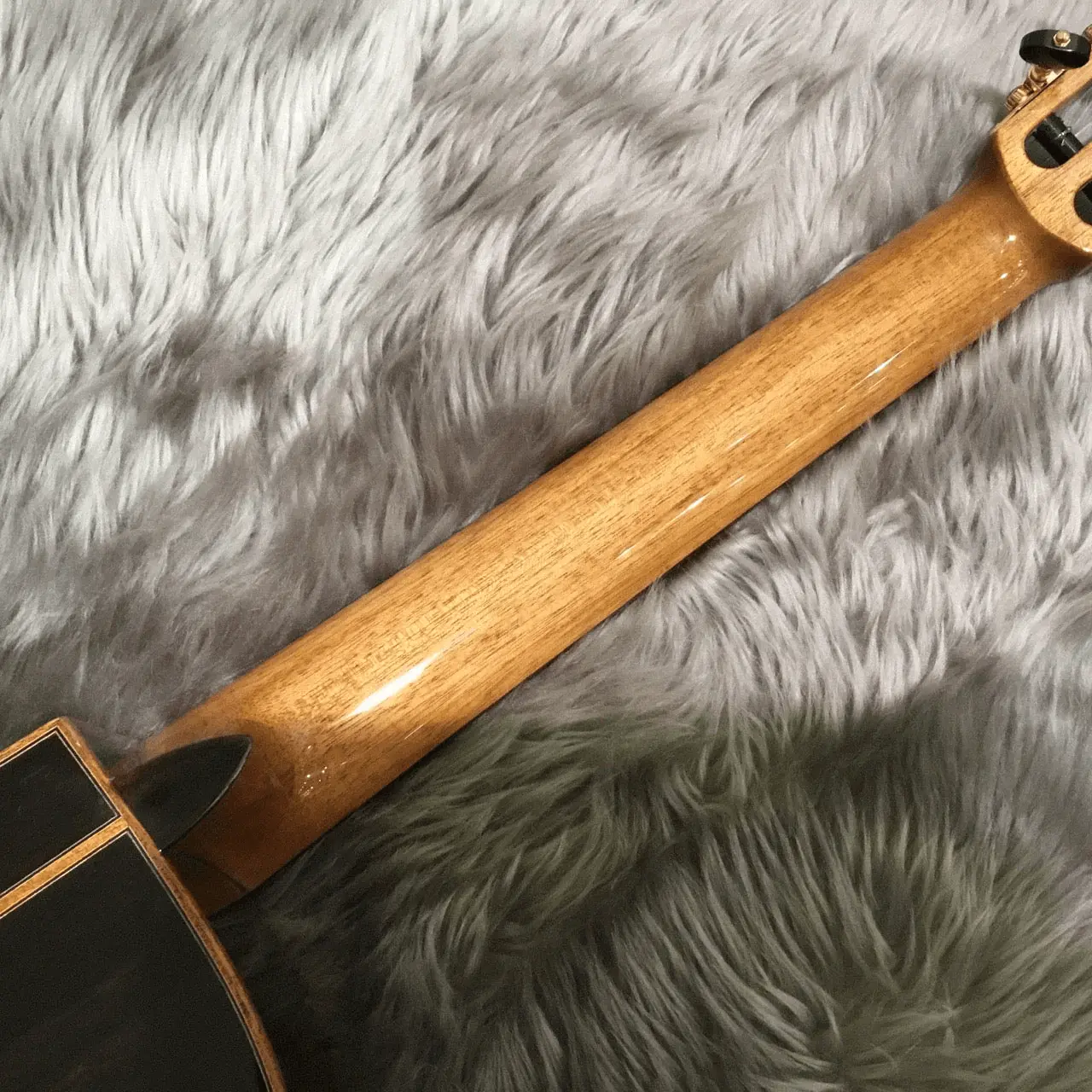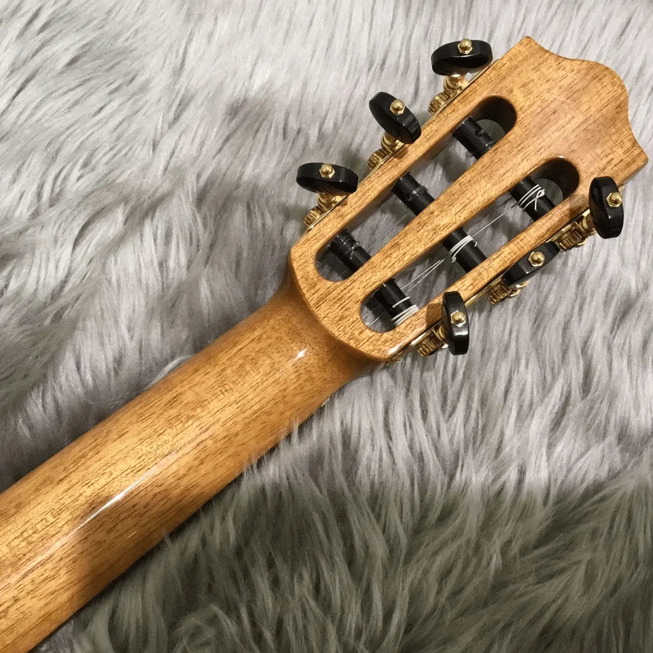 Гриф из махагони позволяет передать наибольшее количество энергии в бридж и деку. Махагон достаточно крепкий и плотный, чтобы обеспечивать стабильность геометрии грифа. При этом относительно легкий.