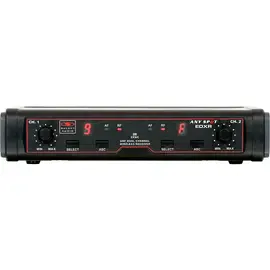 The EDX Series is a dual-channel wireless system featuring two internal antennas (1 for each receiver), 16 selectable channels on each receiver and IR Sync from receiver to transmitter. The EDX has two discreet male XLR outputs and 1 combined 1/4" output on the back of the unit. The output is controlled by a volume control for each receiver, located on the front of the unit.