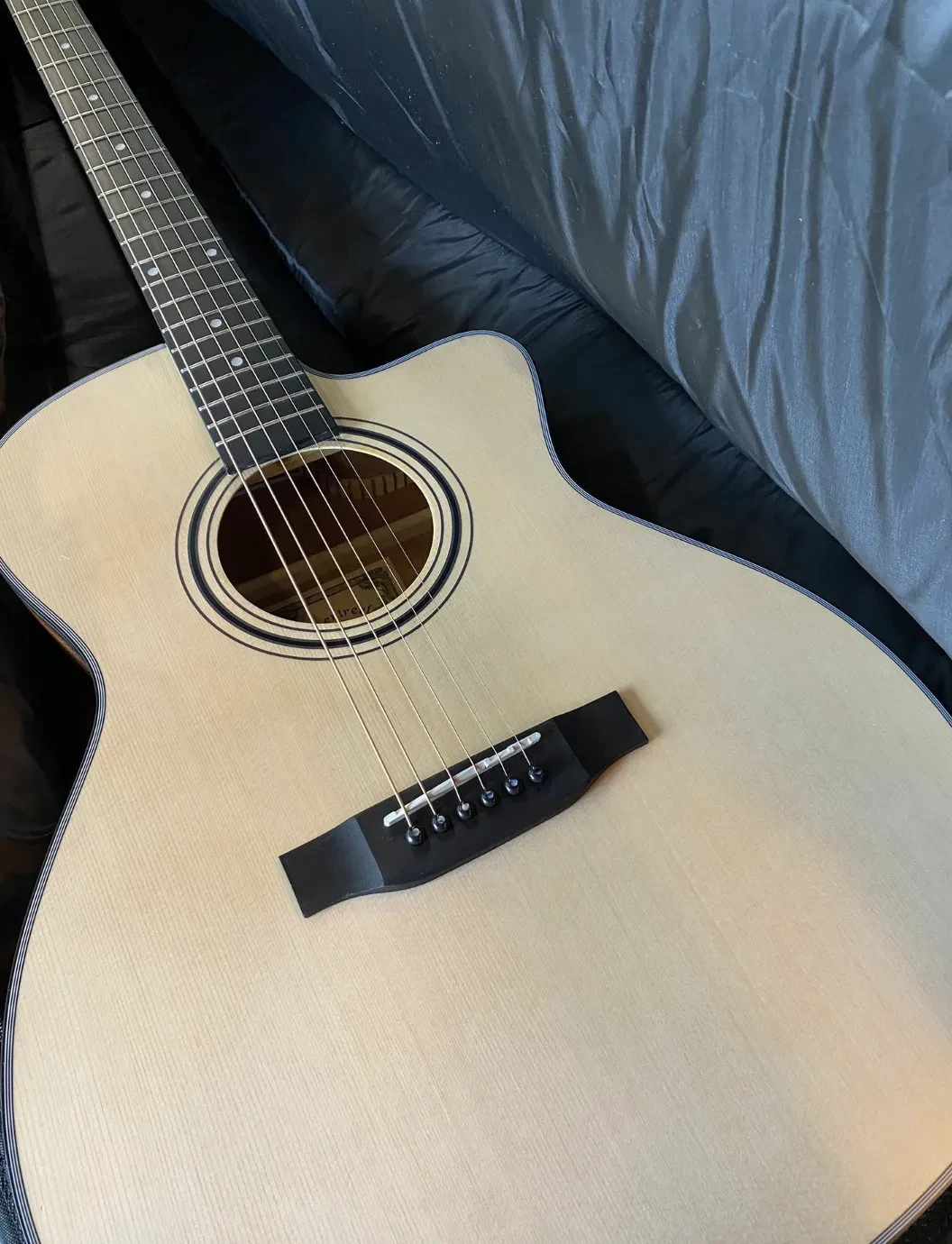 Искал недорогой Grand Auditorium — эта модель попала в руки случайно. Ожидал худшего: звук ровный, хотя басов маловато. Гриф из окуме — огонь, играть комфортно. Лады обработаны аккуратно, люфтов нет. За свои деньги — топ!