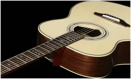Абсолютно универсальная гитара, на которой можно играть как перебором (фингерстайлом), так и медиатором. На такой гитаре будет комфортно играть людям любого роста, возраста и пола.