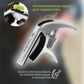 Каподастр bagandmusic AKSS02 Silver с чехлом | Каподастр для акустической гитары Мозеръ MC10 | Каподастр МозерЪ MC12 | Каподастр Planet Waves PW-CP-07 | Каподастр для 6-ти и 12-ти струнных гитар K&M 14545-000-55 | |