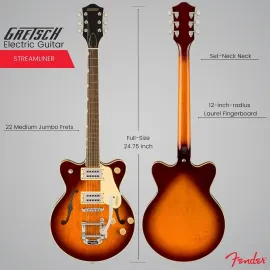 Отзывов пока нет. Если вы владеете информацией о товаре Gretsch G2655T Streamliner Center Block Jr 6 String Forge Glow Electric Guitar, поделитесь ценным советом с теми, кто только собирается его приобрести.