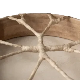 Sela Shaman Drum диаметром 16 дюймов (около 40 см) занимает золотую середину между компактными моделями и крупными инструментами. Он по‑прежнему остаётся удобным и портативным, но при этом обеспечивает более объёмное звучание и выраженные низкие частоты, особенно в сравнении с 14-дюймовым бубном. Мембрана из натуральной буйволиной кожи придаёт звуку мягкость, теплоту и характерную «землистость» с глубоким резонансом — то, что особенно ценится в медитативных и ритуальных практиках.