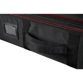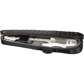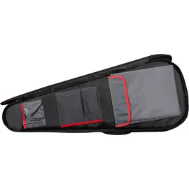 The Road Runner Highway Electric Guitar Gig Bag with a PROP-IT portable music stand combines advanced instrument protection with portable convenience for players on the move. The highway series gig bag features a tough, scratch-resistant outer shell and 20 mm foam padding that shields your guitar from impact and wear during transport. Internal corrugated boards add a layer of structure, similar to a hard case, while a secure neck rest and abrasion-resistant patches protect sensitive hardware. The double-lid design offers storage for laptops, books and accessories without adding bulk. A quilted, trapezoidal shape with red stitching makes the bag stand out visually, and ergonomic handles plus stowaway backpack straps simplify carrying. The included PROP-IT music stand fits inside the gig bag, unfolding quickly to hold sheet music, tablets or books during practice or performance.