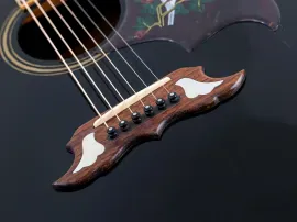 Звук: громкий, объемный, с ярким басом и серединой. Можно играть как медиатором, так и перебором (фингерстайл).